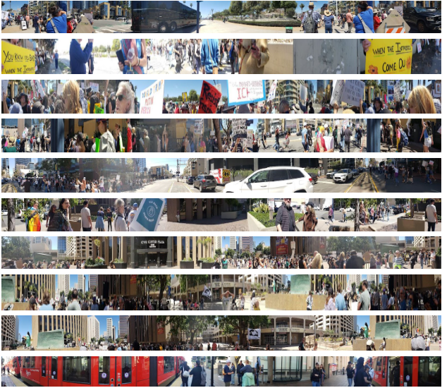 Panoramic collage of “Hands Off” protest in San Diego on April 4, 2025